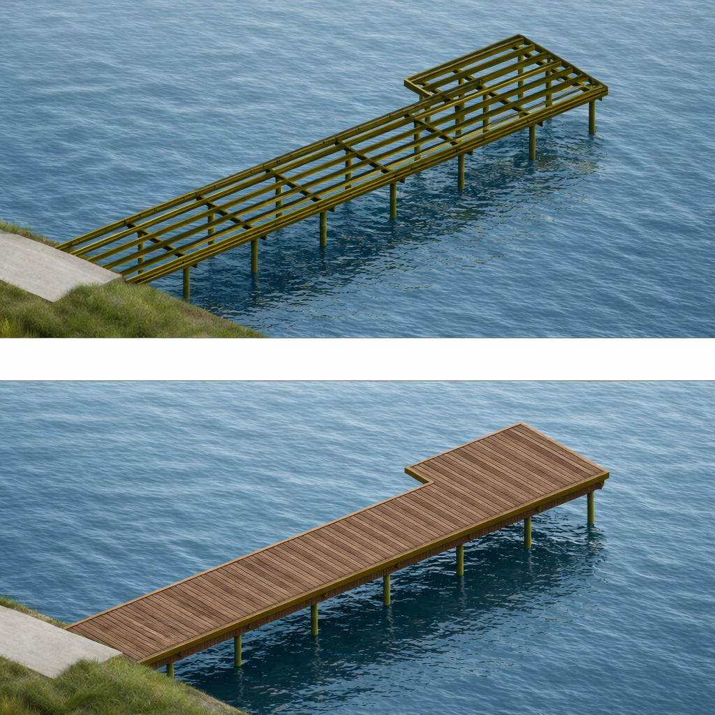 Vi bistår med blant annet ombygging av eksisterende hytter, nye brygger og andre tiltak nær sjøen.